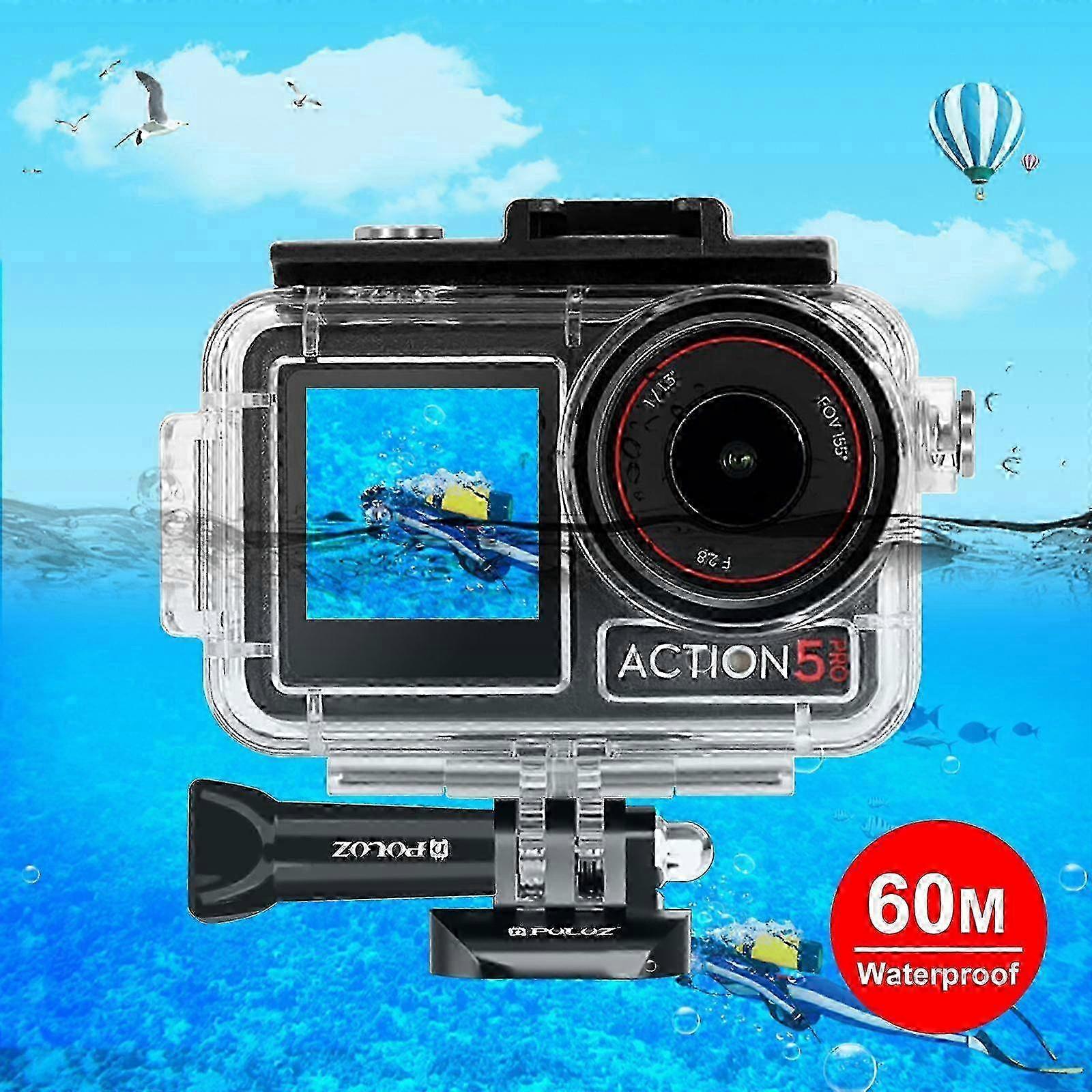 For DJI Osmo Action 5 Pro / 3 / 4 PULUZ 60m Underwater Waterproof Housing Diving Case with Cold Shoe & Buckle Basic Mount & Screw