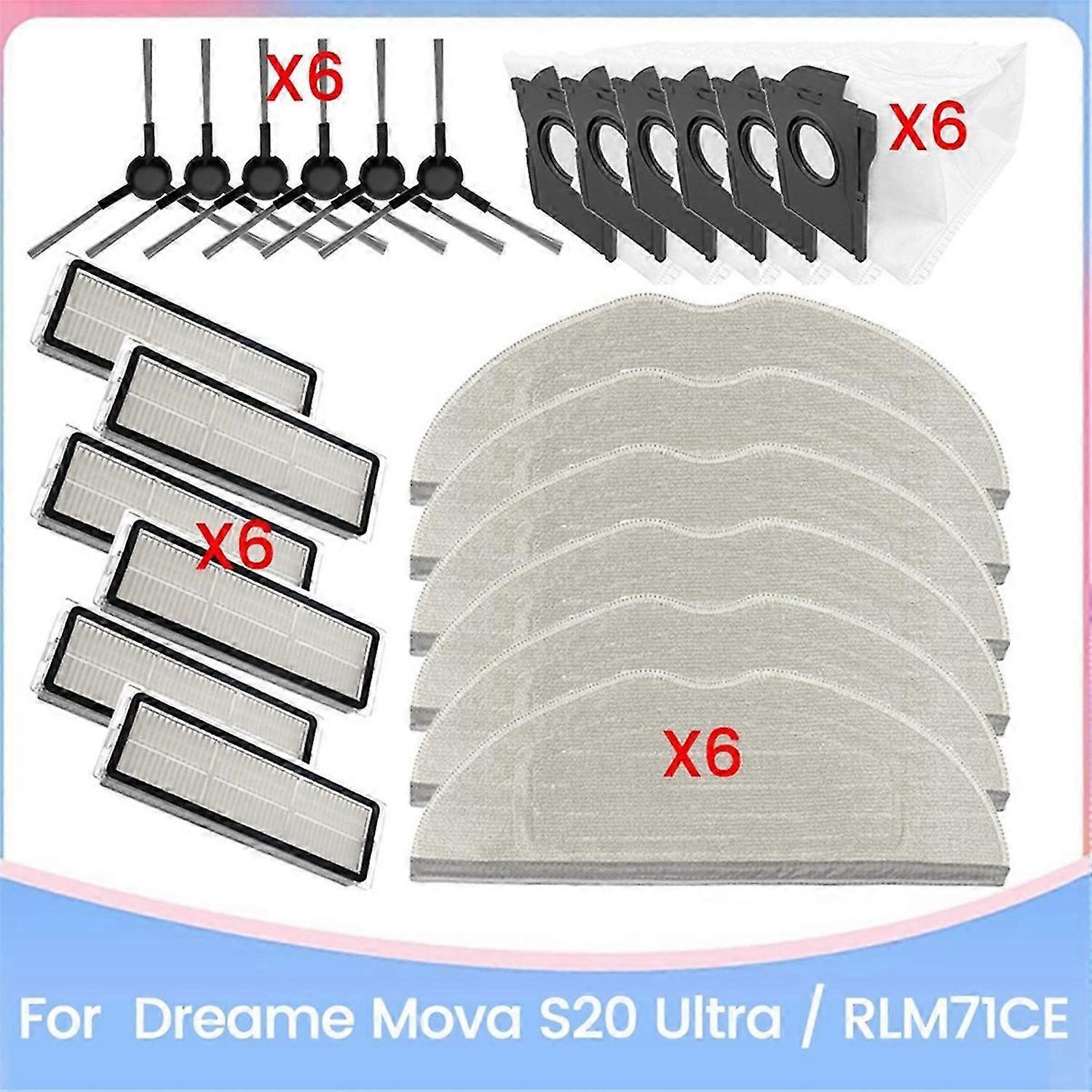 24PCS Brush Filter Dust Bag Mop Cloth Kit for Dreame Mova S20 Ultra/RLM71CE Vacuum Cleaner Replaceme