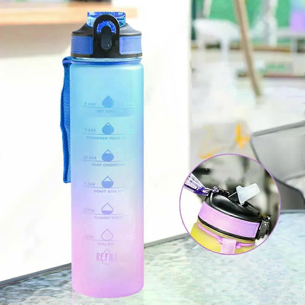 Drinking bottle 1000ml, blue gradient, with straw, time marker, plastic, 29x7.5