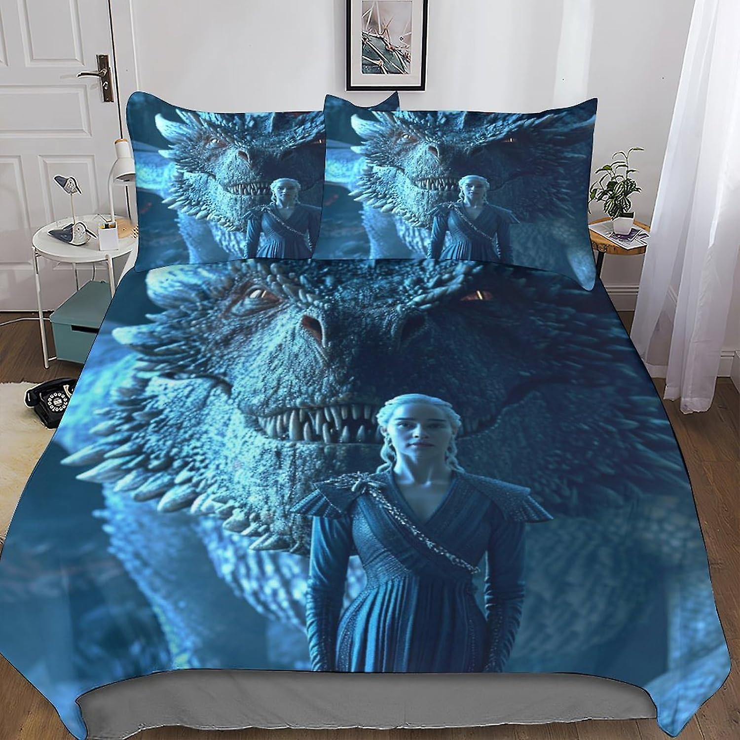 DSJackson Game Of Thrones Trendy Quilt Cover Set with Hidden Zipper Closure - Stylish Microfiber Movies Bedding with 3D Print, 3-Piece Set with Pillow