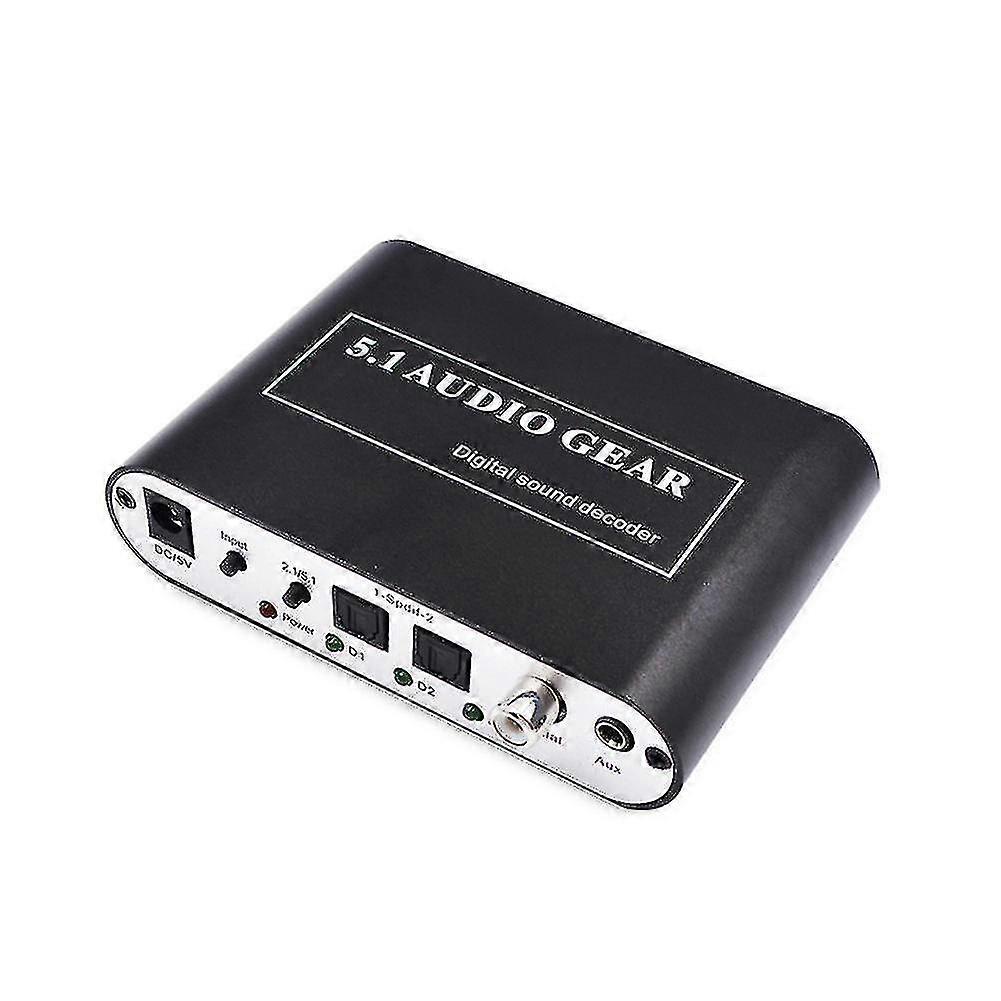 DTS Sound Decoder - SPDIF to 5.1 Channel Digital Audio Converter Product Overview: The DTS Sound Decoder is a high-performance audio converter that transforms digital audio signals (SPDIF) into high-fidelity 5.1 or 2.1 channel analog output. It supports various input formats, including DTS/AC-3, and is compatible with a wide range of devices like network players, HD TVs, Blu-ray DVDs, and more. Its compact design and metal casing ensure strong anti-interference performance and portability, making it an ideal addition to any home theater or audio setup. Key Features: Multi-Channel Support: Switch between 2.1 and 5.1 channels with one button for flexible audio output. Multiple Inputs: Features 2 SPDIF optical inputs, 1 coaxial input, and 1 stereo input for versatile connectivity. Auto Signal Recognition: Automatically detects AC-3, DTS, and LPCM digital audio signals for seamless operation. High Compatibility: Works with various devices, including network players, HD TVs, and Blu-ray DVD players. U Disk Playback: Supports USB playback (except exFAT), automatically recognizing the files for easy access. Compact and Durable: Metal shell provides strong anti-interference, and its small size makes it easy to install. Specifications: Input Formats Supported: MP3, AC3, DTS, WAV, WMA, AAC, FLAC, APE, OGG, M4A, M3U8 Signal to Noise Ratio (SNR): 120 dB Resolution: 80 dB (1kHz) Sampling Rate: 32 - 192 kHz Bit Rate: 16 - 24 Bit Frequency Response: 20 Hz - 20 kHz 0.7 dB Total Harmonic Distortion (THD): 0.25% - 0.065% (20 Hz - 20 kHz) Analog Output Level: 2.2V Analog Input Level: 1V (3 dB) Ports and Interfaces: Optical Input: 2x SPDIF Coaxial Input: 1x Headphone Input: 1x Headphone Output: 3x USB Interface: 1x (for U Disk Playback) Power Supply: Input: 100V-240V (50-60Hz) Output: 5V/1A Maximum Working Current: 400mA Dimensions & Weight: Size: 11 cm x 8 cm x 3 cm (4.33" x 3.15" x 1.18") Net Weight: Approx. 95g Operating Environment: Working Temperature: 0 - 70C Storage Temperature: -10 - 80C Humidity: 10% - 80% (working), 5% - 90% (storage), non-condensing Package Includes: 1 x DTS Sound Decoder 1 x User Manual 1 x Power Supply Note: Due to the lighting and display differences, the item's color may slightly differ from the pictures shown.