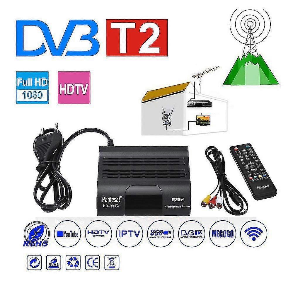 DVB-T2 HEVC 265 Receiver Satellite Wifi Free Digital TV Box Dvb T2 Dvbt2 Tuner Dvb C Iptv M3u YouTube Enjoy free-to-air digital TV with this versatile receiver. Supports multiple languages: English, French, Russian, Vietnamese, Portuguese, Turkish, German, Italian, Spanish, Polish, Persian, Indonesian. (Czech firmware available upon request after purchase). CPU: Montage, MT2203 Tuner: TC6800 Fully DVB-T/T2/C compliant for wide compatibility. Frequency: VHF 174~230MHZ, UHF 470~862MHZ Signal Input: IEC-TYPE Female Video Decoder: H.265/H.264/H.263/MPEG-4/MPEG-2/AVS/AVS+/VC1 Video Output: 480i / 480p / 576p / 576i / 720p / 1080p / 1080i Audio Decoder: MPEG-1/2 Layer I/II/III USB 2.0 port supports up to 500GB storage. Supports USB Wi-Fi dongle (Ralink RT5370). Access Megogo, YouTube, and IPTV for endless entertainment. AC Input: 100-240Vac DC Input: 5Vdc (MINI USB JACK), compatible with mobile phone chargers or TV USB interface. Includes: 1*AV Cable, 1*User Manual, 1*Remote Control Weight: 0.242kg/1pcs Size: L*W*H=92*80*30MM/1PCS Note: Please ensure compatibility with your local broadcasting standards before purchasing. This device supports free-to-air signals with H.265 frequency and lower, and does not support AC3 audio. Some Italian and Spanish channels may not be available. Check local frequency support beforehand.