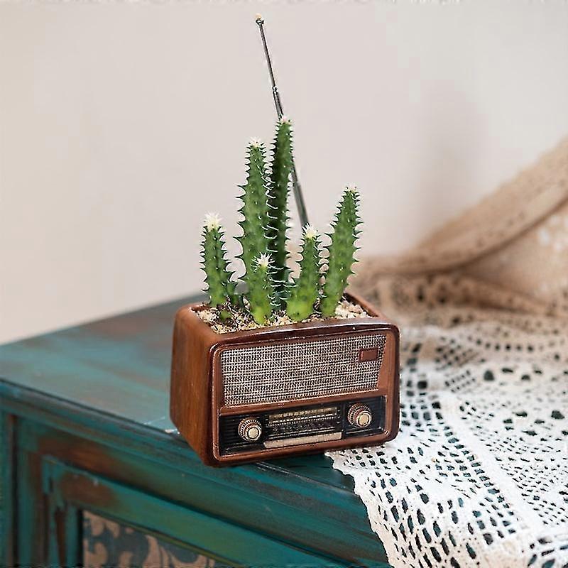 Dww-classic Vintage Style Ornament Planter Home Personality Multipurpose Potted Resin Crafts Radio - Handmade Wooden Look