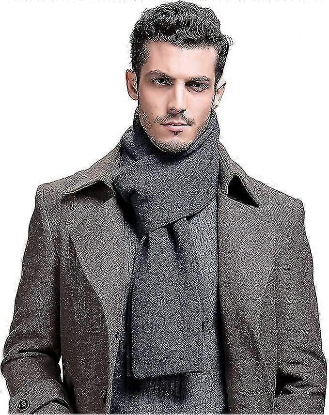 Dww-men's 100% Australian Merino Wool Scarf Knitted Soft Warm Neckwear(dark Grey)
