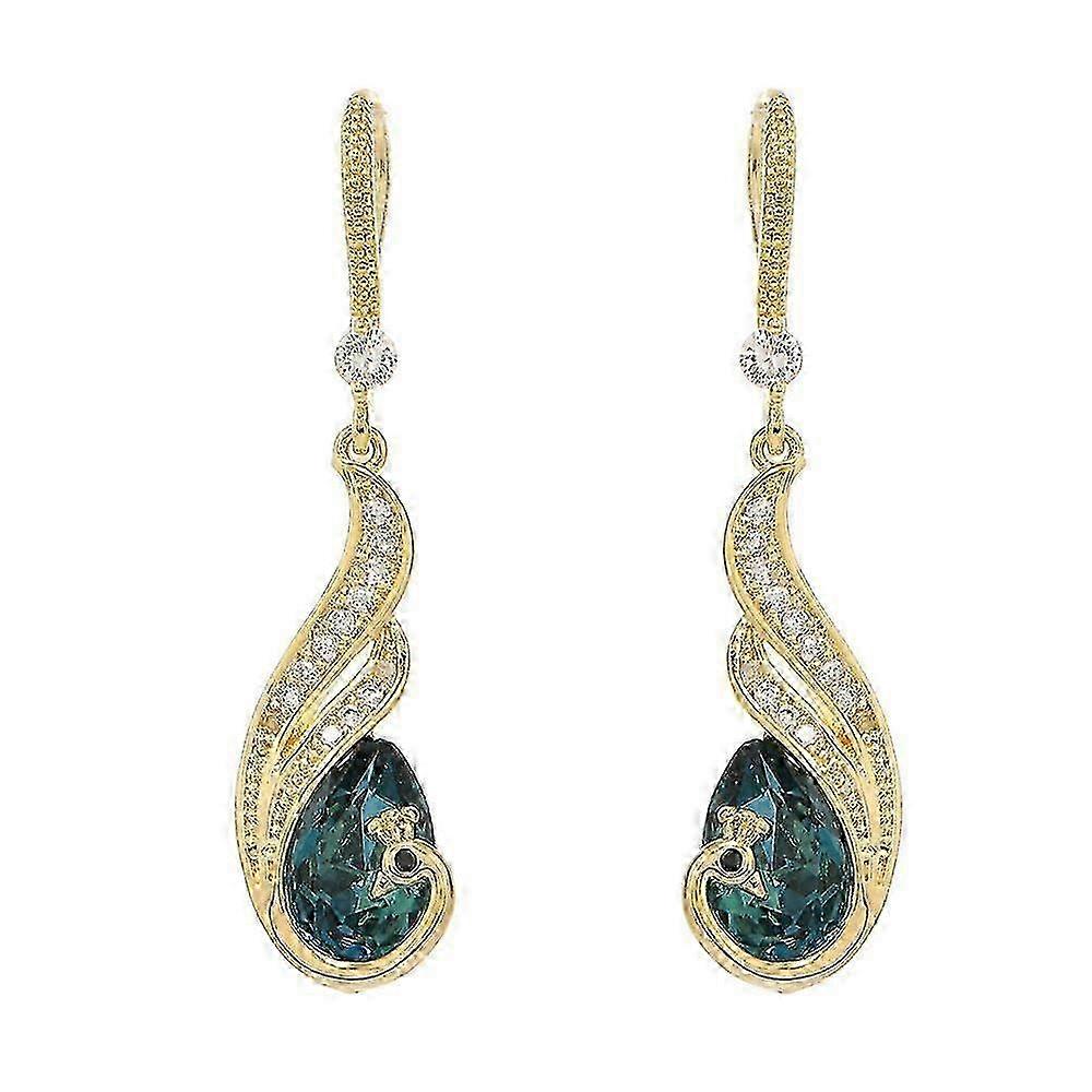 Dww-1 paire Long style personnalit 925 argent aiguille oreille crochet paon rouge serti de diamants boucles doreilles