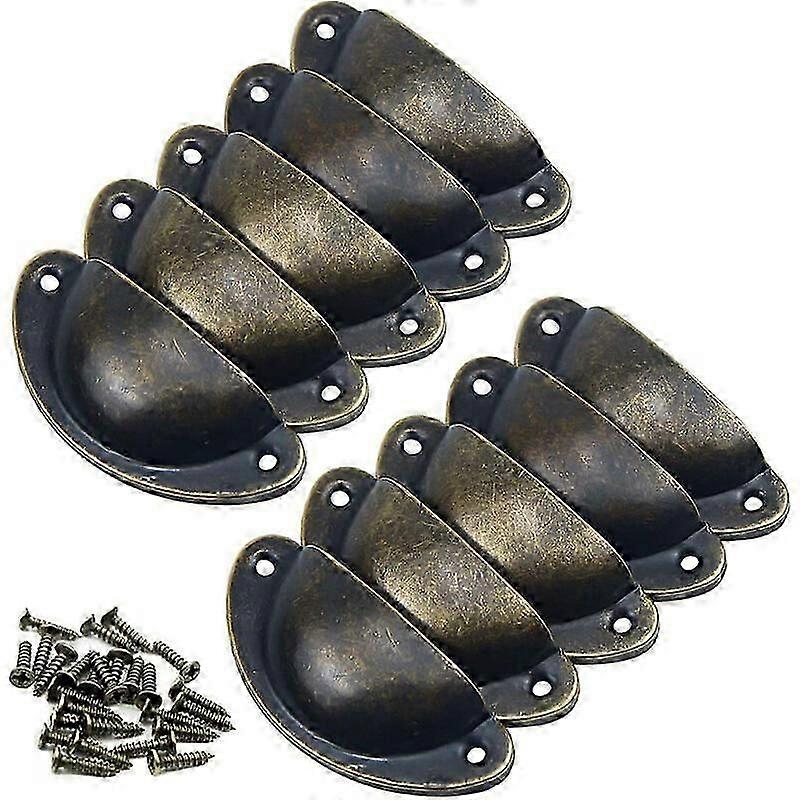 DWW-10x Poignes Meubles Retro 82mm Forme de Coquille Boutons pour Porte Tiroir avec Vis Bronze-2025-ss