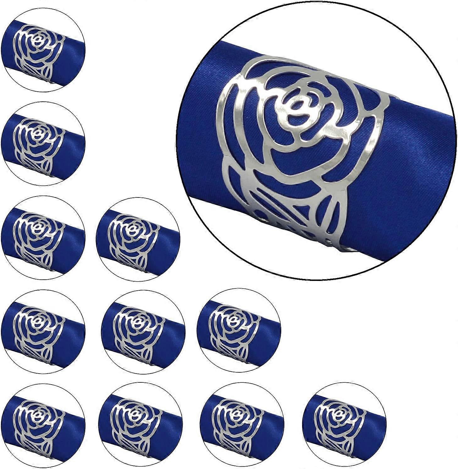 Dww-12 Pcs Argent Rond de Serviette, Rond de Serviettes de Table Porte-serviettes en Mtal Ajour Motif Fleur Bague Dco Pour Mariage Banquet Anniversai