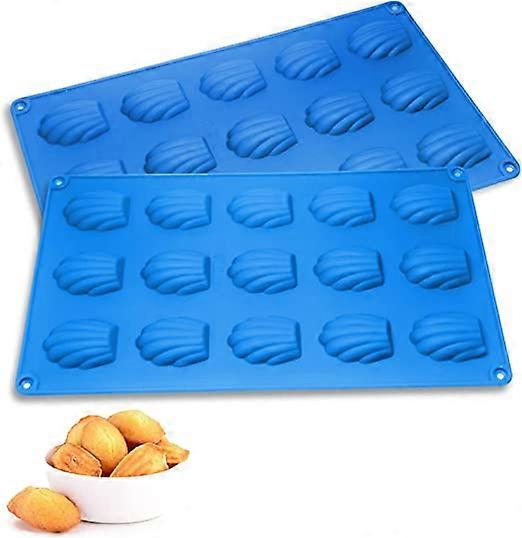 Dww-(15 cavits, bleu) mini moule Madeleine silicone Set de 2, anti - adhsif moule Madeleine moule muffin au chocolat Mousse Madeleine
