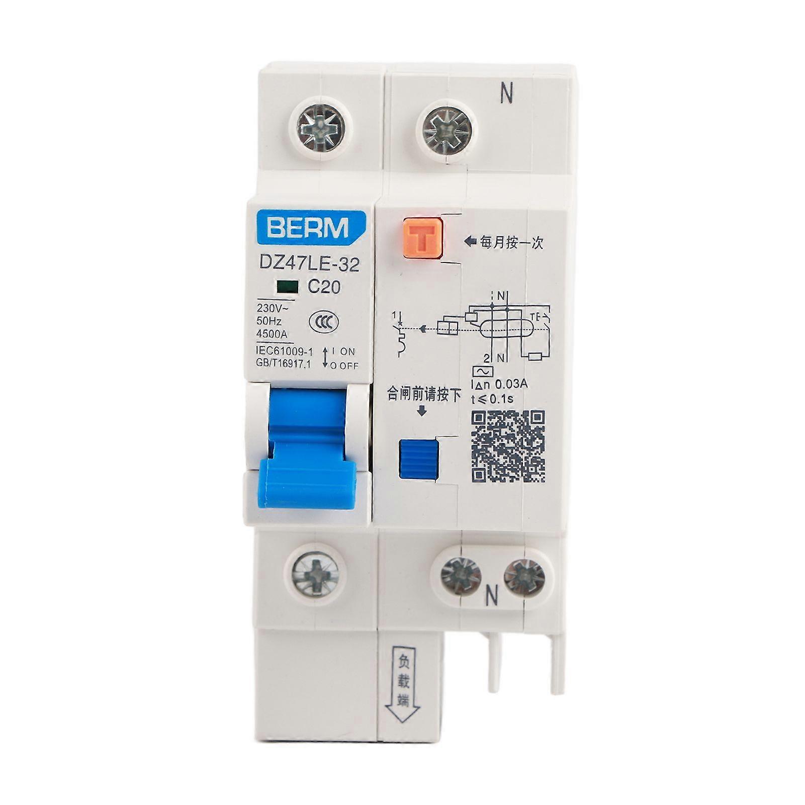 DZ47LE 32 1P+N 20A 230V Earth Leakage Safety Protection Circuit Breaker (20A)