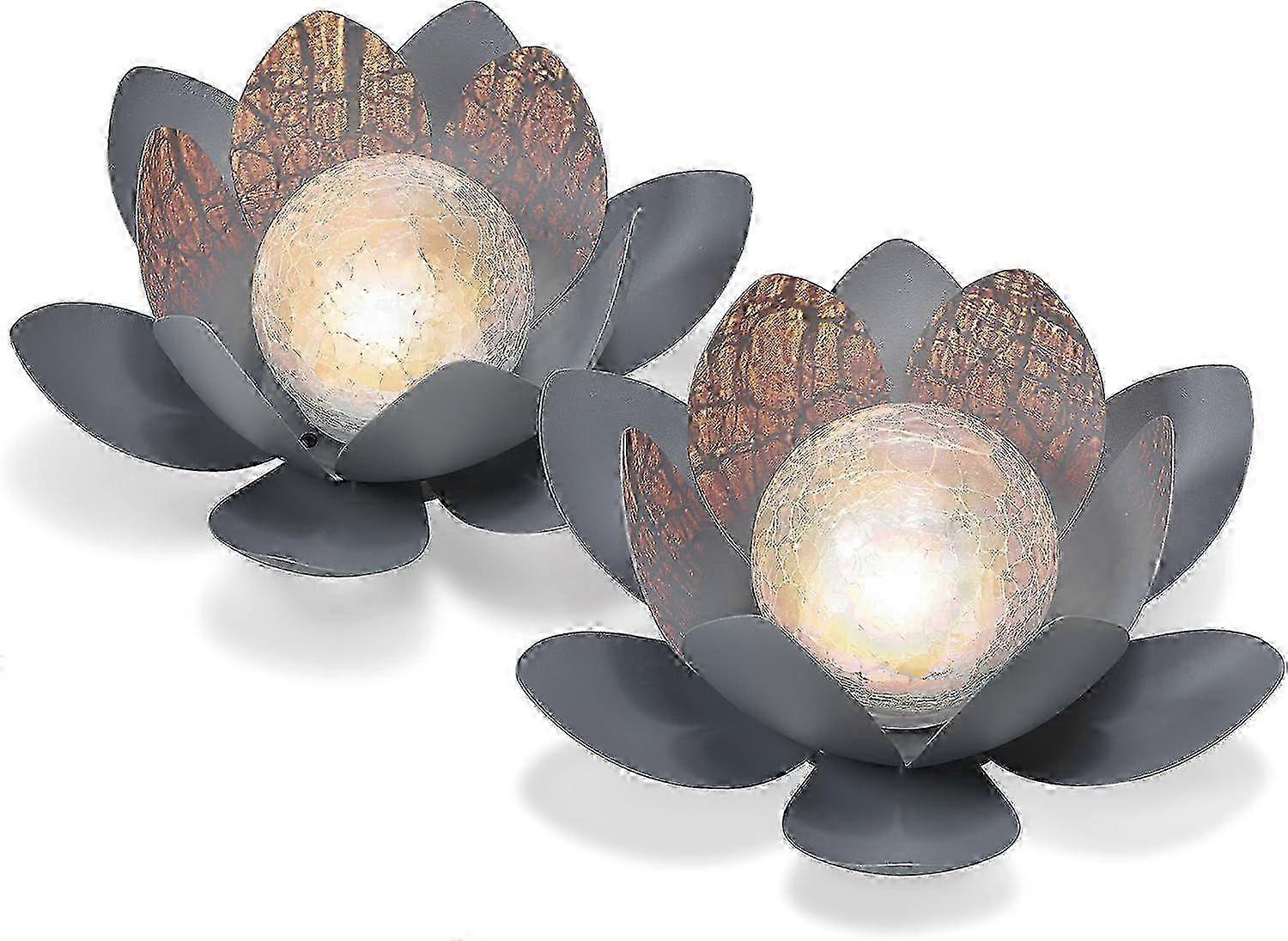 e Dekoratives Solar Lotusblten 2er Set aus Metall - angenehm warmweies Licht - traumhafte Lichteffekte durch Bruchglasoptik - (D x H): 2