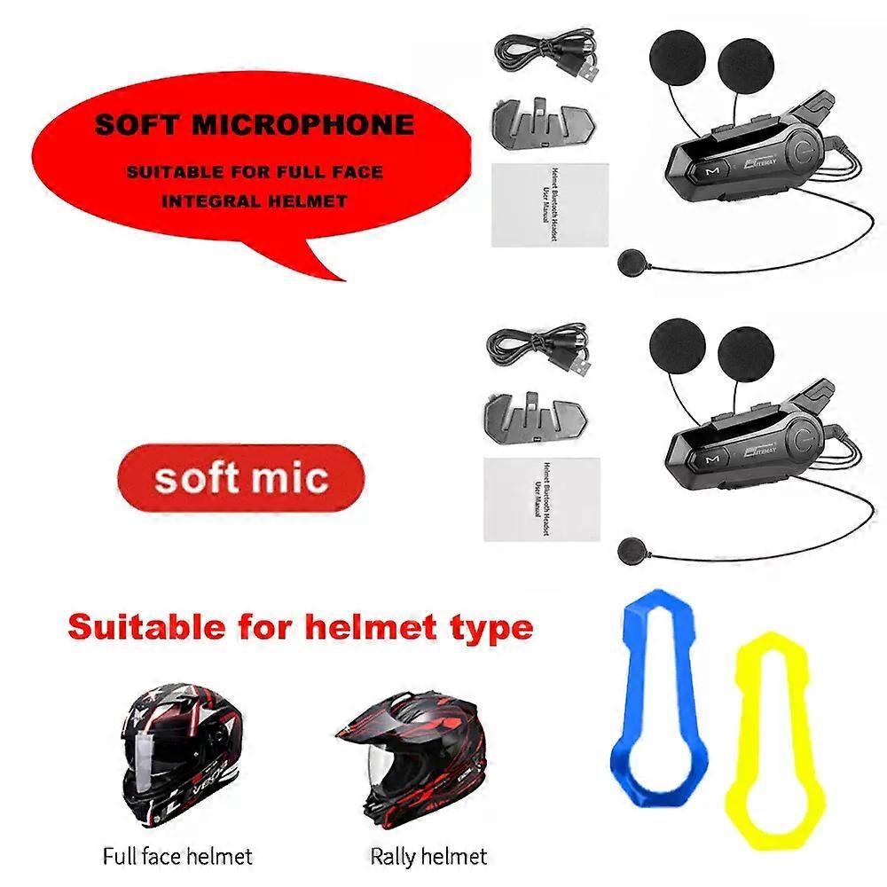 E1 Bluetooth 1000Mter Intercom Motorcycle Helmet Waterproof Headphones for 2 Rider intercomunicador moto wireless intercom -- The front seat and rear seat can communicate between two riders; And the connection distance between two devices is 1000M. Wide Application: *The soft microphone set is suitable for full face helmet, rally helmet. *Hard microphone set is suitable for face helmet, reveal face helmet, retro helmet. Features: -Precise operation Thanks to the voice prompt function, it can help you achieve more precise operations, reduce errors and faster communication. -Clear voice U-band propagation is relatively stable, and the frequency band is wider, and the anti-jamming ability is strong, which ensures a clear conversation experience. -Easy to use This product adopts physical button pressure pattern to ensure that you can clearly see the button operation when wearing gloves to prevent misuse. -Waterproof Using well-designed waterproof technology, the waterproof level of this headset has reached IPX6 without fear of wind and rain. Specifications: Type: Motorcycle Bluetooth Headphones Material: Plastic + Electric Components Quantity: 1pc Item Color: Black Battery: Built-in 3.7V 800mAh Battery Charging Time: 2h Call Time: 12h Standby Time: 240h Bluetooth Version: 5.0 Bluetooth Waterproof Level: IPX6 Size: 103*26*50mm/4.05*1.02*1.97in (L*W*H) Weight: 150g/5.29oz Packages: 1 * Headphone 1 * Base 1 * Integrated Full Helmet Microphone 1 * Charging Cable 1 * User manual 1 * Pack 1, TWS motorcycle headphones Smooth communication, clear conversation Double intercom/IPX6/Bluetooth 5.0 2. Suitable for various shape oacute;in helmet Easy installation, suitable for various helmet oacute;in 3. Whisper into your ear, m oacute;into yourself clearly U-band is characterized by relatively stable transmission, wide frequency bandclearvoice, convenient mobile communication and strong anti-in 4 level 6 waterproof Designed waterproof process, no fear of wind and rain Invasion, IPX6 protection treatment, Durable, not afraid of challenges 5, The front seat and back seat can communicate between two riders, and the connection distance between two devices is 1000M. 6 as your personal assistant, for every precise escort operation; Fewer error oacute;w, faster 7 Anti-misoperation pressure wrench With physical pressure button pattern, make sure wearing gloves when driving blindly can be clearly perceived, accurate operation 8 installation diagram 3M adhesive, easy installation, easy connection 1. Tear off the adhesive paper 3M over the glue mount and stick it on the left side of the helmet; Clip the handset onto the mount. Please do not remove it arbitrarily after pasting. The maximum viscosity is 24 hours after oacute;later 2. Stick the Velcro on the headset to the ear bag inside the helmet, and attach the speaker to the ear bag; The Velcro for the microphone is placed under the left ear pocket of the helmet and the microphone is secured. Make sure the microphone is close to your mouth. For the best effect, when using the microphone, keep the microphone 1-2 cm away from the user's mouth 3. Connect the microphone with speaker cable plug to the headset, and the attraction is complete