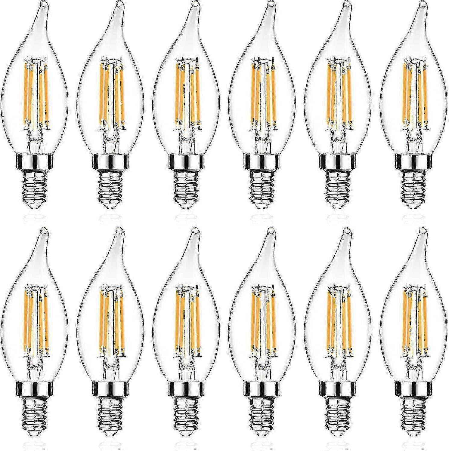 E12 Candelabra Led Light Bulb, Flame Tip Decorative Led Filament Candle Bulb, E12 Base, Non-dimmable, Pack Of 12