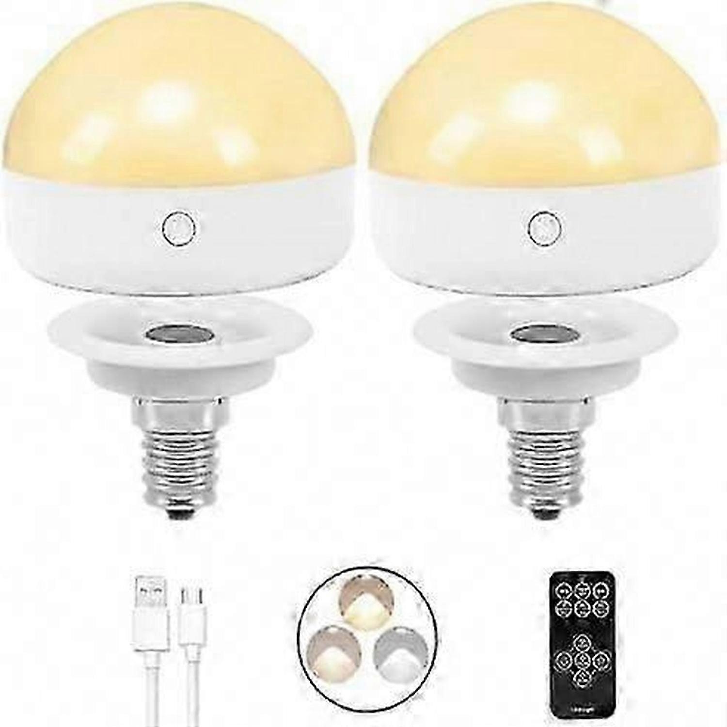 E14 Rechargeable Light Bulb, 2Packs, 300LM, 40W Equivalent, Detachable Charging, 3 Color Temperature, Remote Control, Emergency Lamp, Dimmer, Timer fo