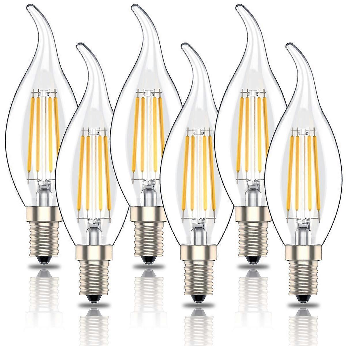 E14 Candle Light Bulb LED 4W Replaces 40W Incandescent, Warm White 2700K, 400 Lumens, Classic Candelabra, Pack of 6