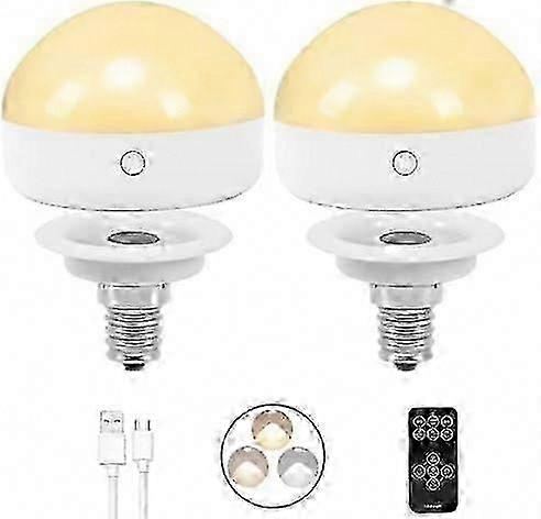 E14 Rechargeable Light Bulb, 2packs, 300lm, 40w Equivalent, Detachable Charging, 3 Color Temperature, Remote Control, Emergency Lamp, Dimmer, Timer Fo