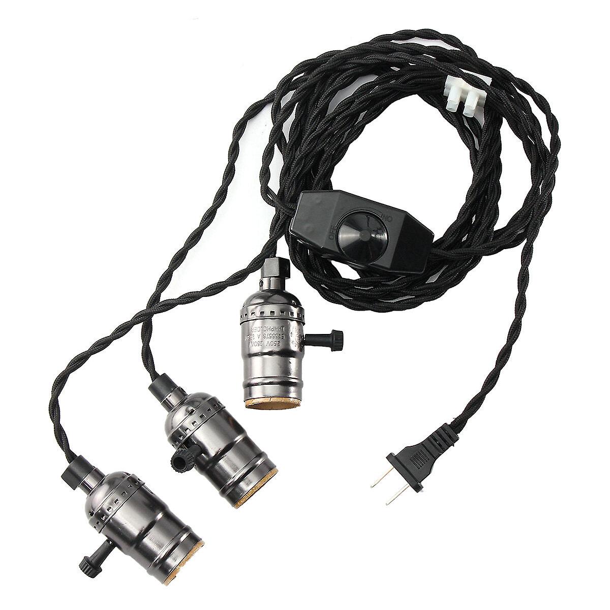 Features: This pendant light kits are designed for safety, and come with three eye-catching sockets matched to our unique 17ft twisted cloth cord.  With its long cord length and in-line on/off Dimmer switch, this lamp cord kit is the ideal vintage solution for hanging attractive antique bulbs during Wedding receptions or for use in home decor, restaurant spaces, dinner parties, backyard patios, or other social events.     Specification: Light Source Type: Incandescent, Edison Light Bulb.  Socket Color: Black Pearl/Imitation Bronze.  Material: Aluminum+ Iron+ Plastic.  Wattage: 0-250W.  Voltage: 110- 220V.  Wire of Length: 17ft/5.2m(Please check the picture for more details).  Base: E26/ E27.     Package Included: 1 x Triple Sockets with cord(Bulb is not included)