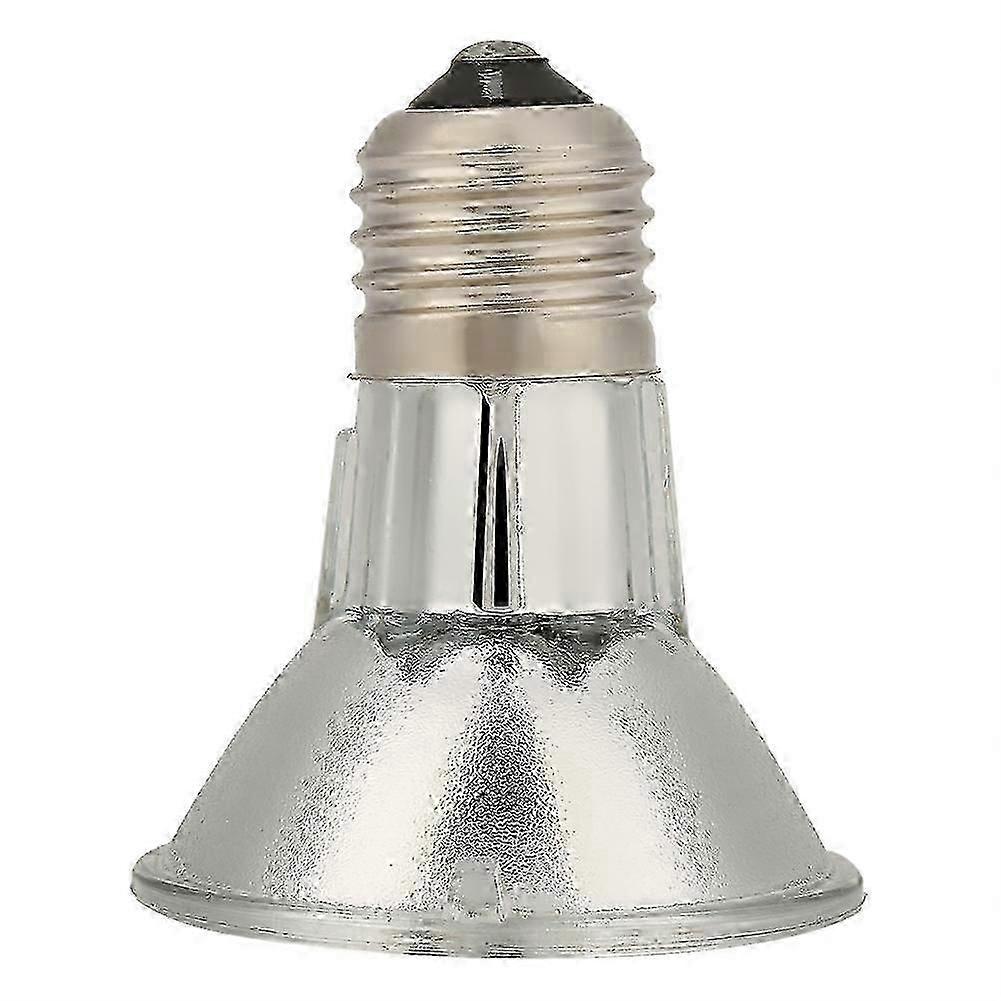 Features: Perfect 24 hour heat source for all reptiles. The flat-faced design is more efficient and longer lasting than conical designs which build up excess heat internally ultimately carbonizing the element. Light is more effective with the use of UVB Lamp. These heating devices screw into a standard porcelain incandescent socket, giving off intense light. Ideal for basking reptiles, more concentrating reflectors, halogen prominent hotspots. Specification: Material: Glass Color: Silver Base: E27 Watt: 25 / 50 / 75 / 100W Voltage: 220V Size (Dia.) x (L): 6.3*7.5cm / 2.5*3.0inch(Approx.) Package list: 1*Reptile halogen bulb Notice: Please allow 1-3cm error due to manual measurement and make sure you do not mind before ordering. Please understand that colors may exist chromatic aberration as the different placement of pictures. .