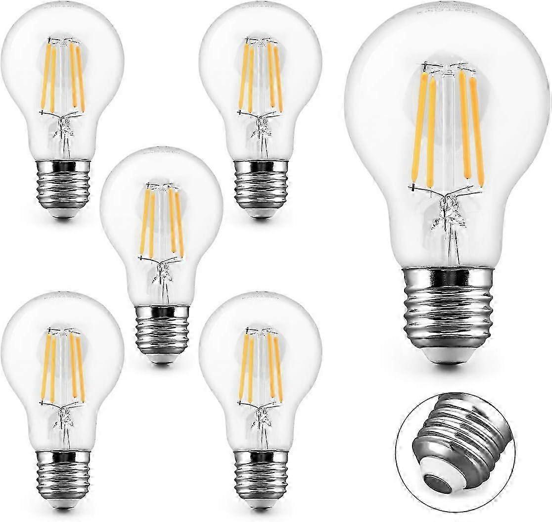 Pack of 6 E27 LED Filament Bulbs Warm White 2700K 4W 400LM Equivalent to 40W Halogen Bulb Low Energy Bulb A60 Vintage Style Bulb Suitable fo