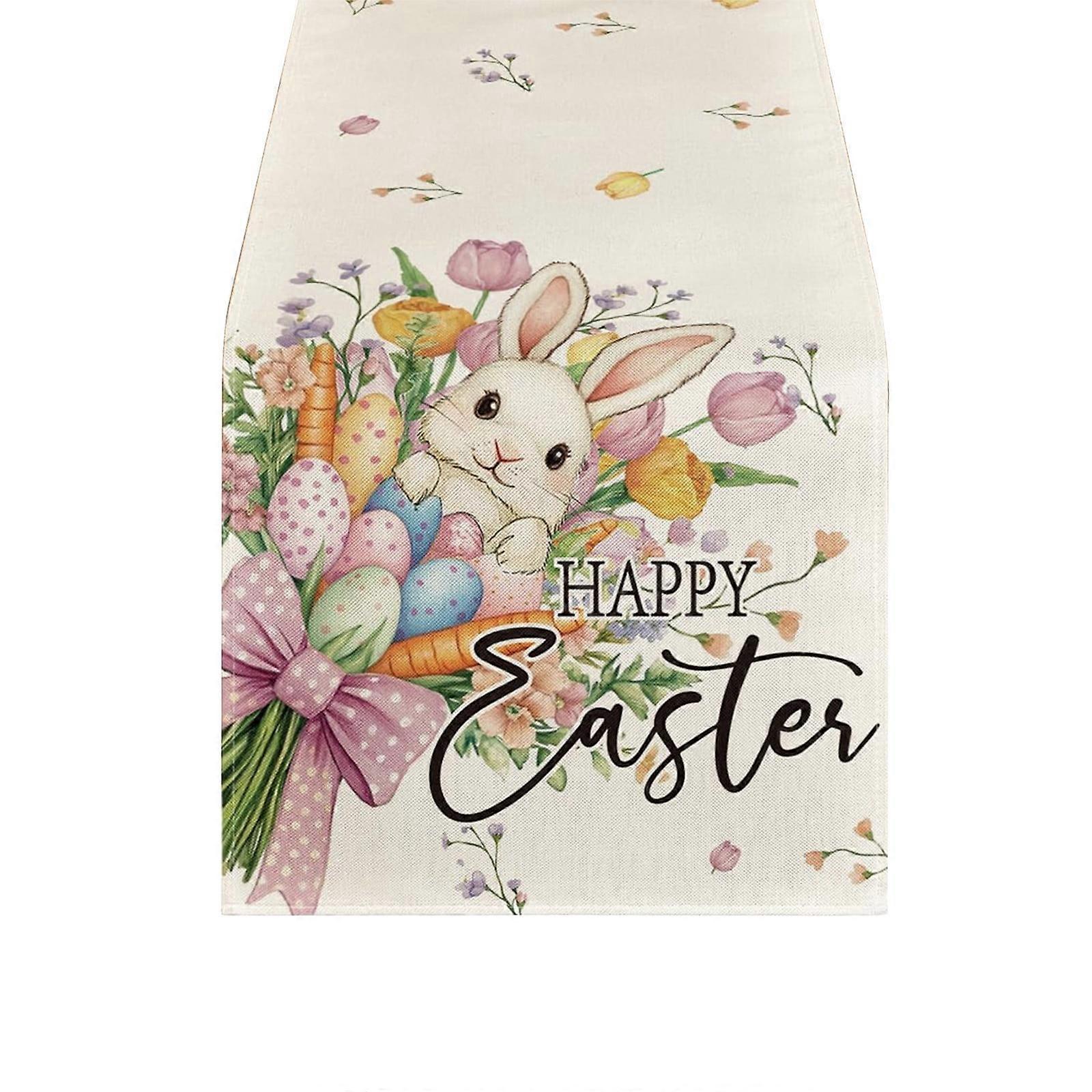Easter Table Runner Spring-themed Table Runner With Rabbits And Easter Eggs Made Of Linen Material Suitable For Easter Home Decoration