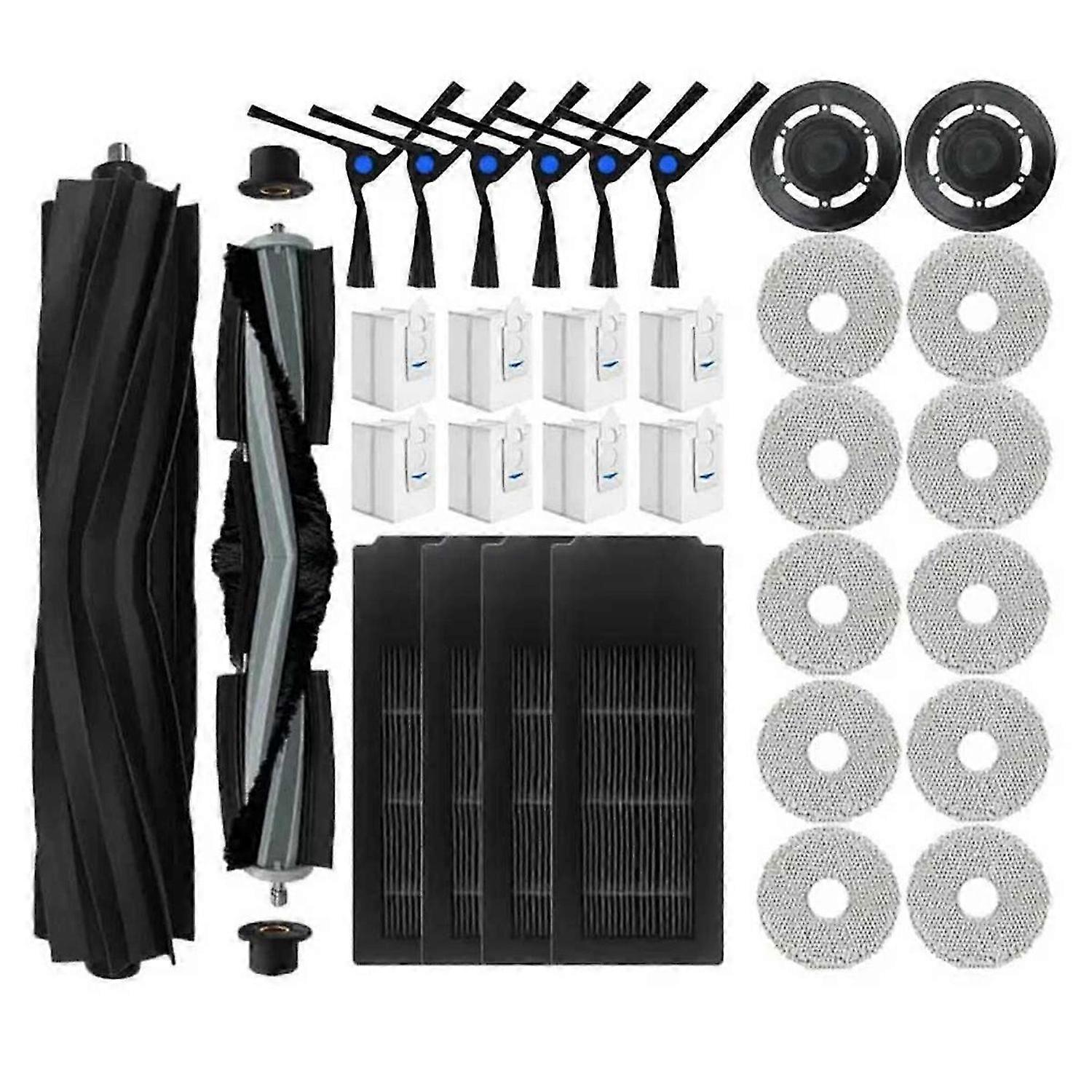 100% brand new and high quality.Made of high-quality materials, more durable Side brush allows your vacuum cleaner to reach deeper into the carpet for a more thorough cleaning Filter filters fine dust to reduce dust, pollen and other allergens from penetrating into the air you breathe. Uniquely designed brushes with rubber treads to adapt to different floor surfaces that remove everything from small dust to large deposits. As part of normal maintenance, it can be easily removed and replaced.It is best to replace spare parts every 2 to 3 months to keep the machine running at its best performance<br><br>material: plastic Color as shown<br><br>Package Contents: 1 x roller brush 1 x glue brush 4 x filter 6 x side brush 8 x dust bag 10 x rag 2 x stand<br><br>Only the above package content, other products are not included. Note: Light reflection and different displays may cause the color of the item in the picture a little different from the real thing. The measurement allowed error is +/- 1-3cm.