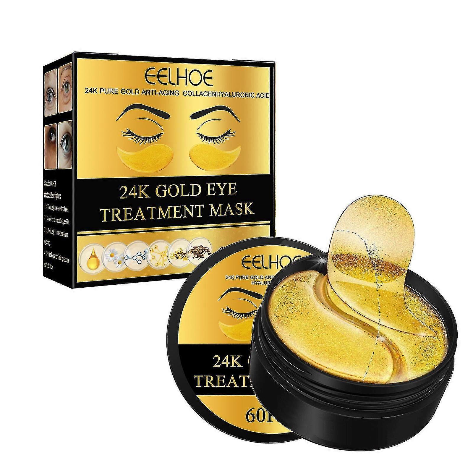 Pack of 60pcs 24K Gold Under Eye Mask or Treatment Patch, Anti-Aging Collagen Hyaluronic Acid Eye Sheet which helps in Moisturizing, Skin Brightening, Firming, Treating Black Under Eye Circles, Puffy Eyes, Fine Lines and Wrinkle Repair. Our eye mask is infused with a mixture of natural plant essence, 24k gold and multiple hyaluronic acids, it deeply repairs eye skin and promotes blood circulation. It is safe, easy to use and has no side effects.Specifications: Color: Yellow Size: 60 pcs/box Item Form: Gel Skin Type: Combination Ingredients: Alcohol-free Scent: Natural Scent Height: 8 cm Width: 4.2 cm Length: 8 cm Net Weight: 160 gm Net Volume: 130 ml KEY FEATURES: PREMIUM INGREDIENTS: Collagen, Feverfew Extract, Hyaluronic Acid, Glycerol, Glycyrrhiza Uralensis, 24k Gold, are effective skincare ingredients which can rejuvenate & protect the skin around your eyes without any side effects. KEY BENEFITS: EELHOE eye mask contains sufficient 24k active gold, which acts as good absorbent, therefore, reduce puffiness, eye bags, wrinkles and dark circles while reducing the signs of aging, making your skin look younger. CONVINEINT AND EFFECTIVE: In just a few minutes, while in the comfort of your home, you can easily DIY your way to a brighter & younger-looking skin. AFTER-SALE GUARANTEE: Our eye patches are perfect for both men & women, especially for those who often work late, often stay up late. If you have any dissatisfaction about our products, Please contact us and we will solve the problems for you. HOW TO USE: Clean your face and eyes with warm water. Put eye pads under your eyes and press gently to secure them. Apply for 15-20 minutes. Remove the eye mask & clean your face with warm water. info:We aim to show you accurate product information. Manufacturers, suppliers and others provide what you see here, and we have not verified it.See our disclaimer