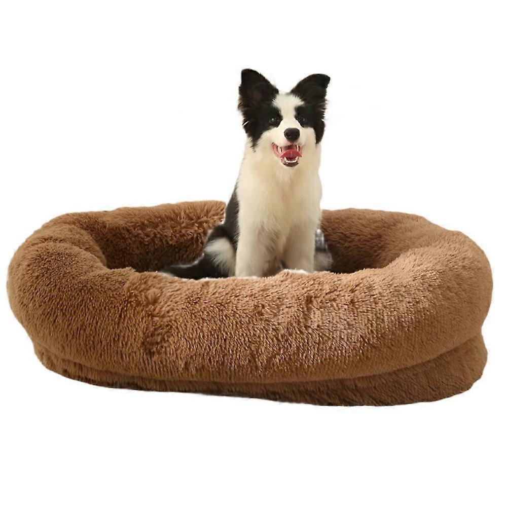 Elosung Fluffy Donut Shaped Pet Bed Soft Cozy And Anti Anxiety For Dogs Cats Machine Washable Khaki Pet Beds