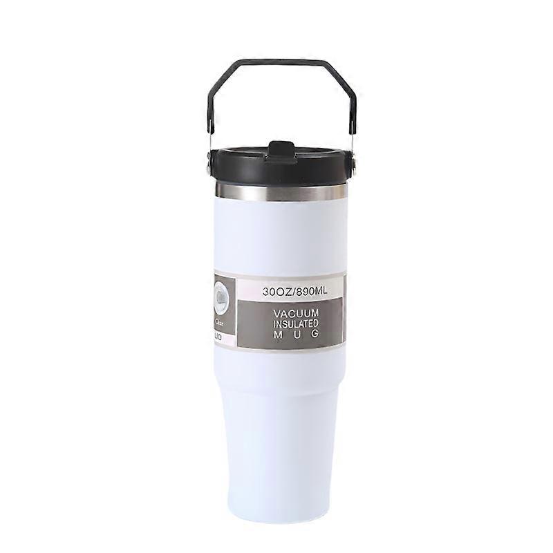 White 30Oz 304 Stainless Steel Ice Cup With Handle - Car And Travel Cup Double Insulated For Hot Cold Drinks