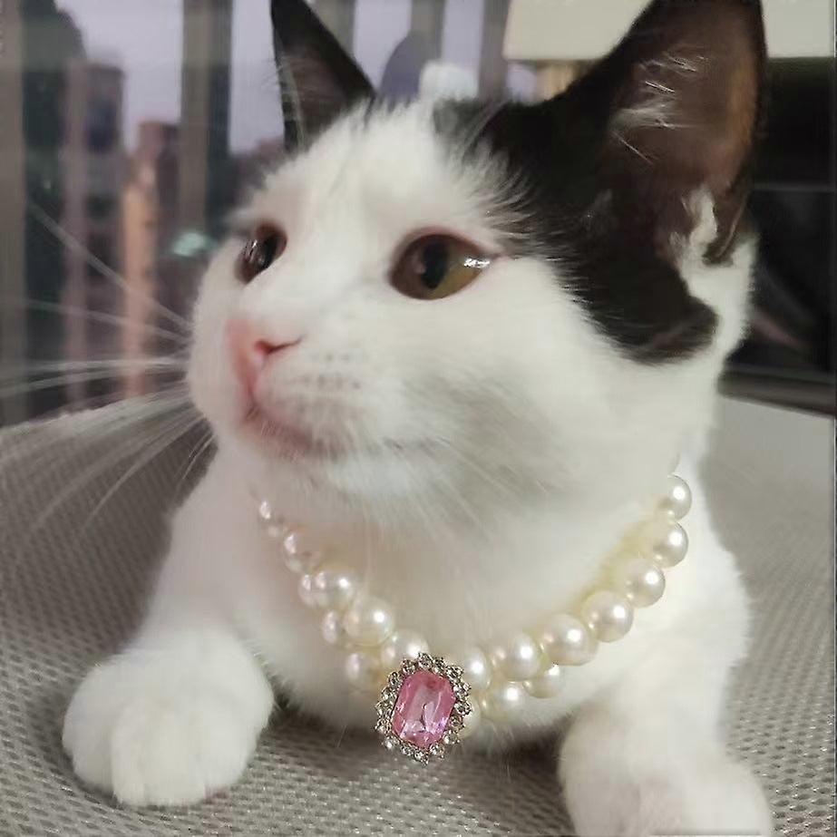 Elosung 3 Pcs Pink Diamond Double Strand Pearl & Rhinestone Pet Necklace Luxury Collar For Cats Dogs Size M (25 31Cm) Dog Collars