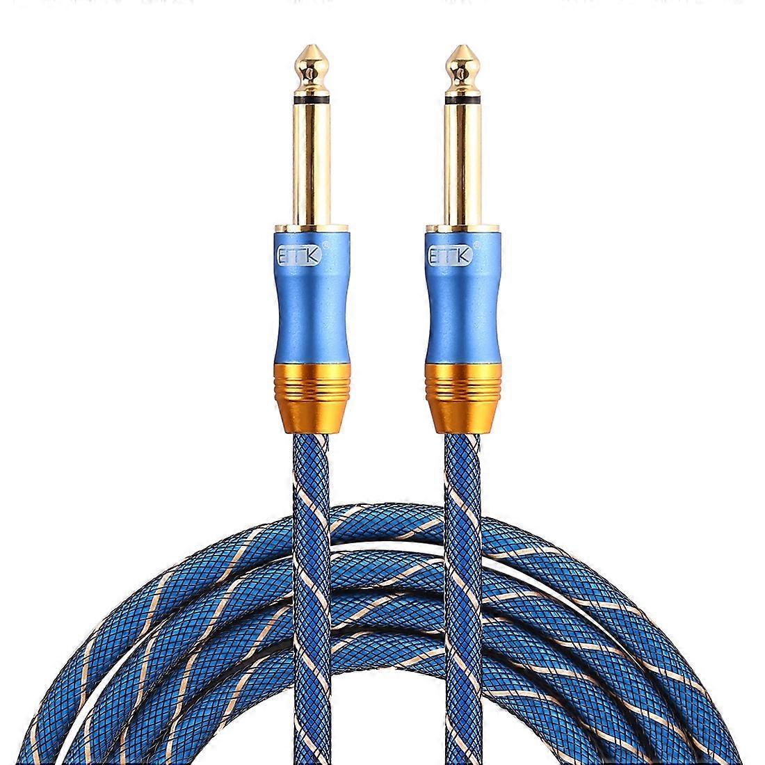 EMK 6.35mm Male to Male 3 Section Gold-plated Plug Grid Nylon Braided Audio Cable for Speaker Amplifier Mixer, Length: 1.5m(Blue) 1. 24K gold-plated head, stable transmission, anti-oxidation. 2. After more than 15,000 bending life test, double braided nylon rope, to prevent tangling and increase the durability of another layer, more flexible, can be bent 360 degrees, sturdy. 3. Fully compatible with any audio equipment with 6.35mm interface, such as: amplifier, audio, DJ mixer. 4. 6.35mm plug. 5. Line length: 1.5m.