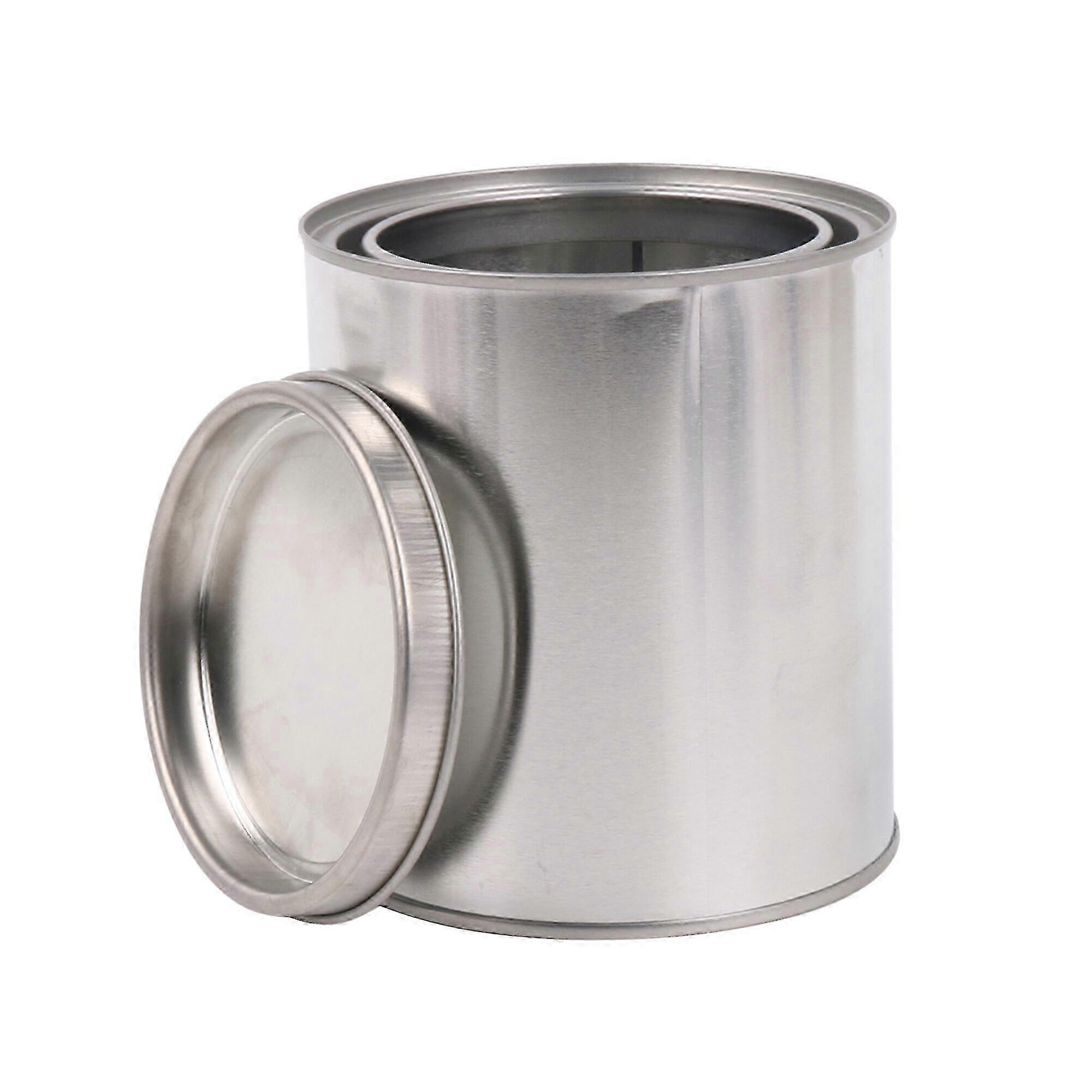 Empty Tinplate Unlined Paint Can Jar w/ Lids 2 Pint Size Silver Color