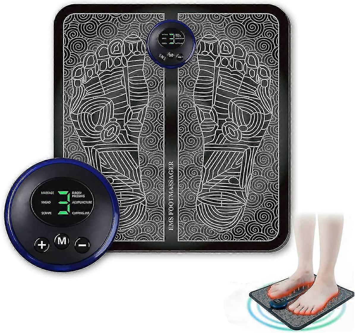 Improve Blood Circulation: Improve Blood Circulation In The Feet And Legs; Relieve Pain And Relieve Foot And Body Pain; Increases Leg Muscle Activity, Decreases Leg Muscle Weakness. It Has A Supporting Effect On Various Leg Problems. Such As Foot Neuropathy, Cramps, Plantar Fasciitis, Etc.9 Adjustable Intensities And 6 Massage Modes: 9 Adjustable Intensity Levels And 6 Vibration Modes Directly Stimulate Acupuncture Points, Can Quickly Relieve Pain, Slow Physical And Mental Fatigue And Improve Sleep. 15 Minutes Is A Treatment Time, When The Time Is Up, It Will Automatically Turn Off.Foldable Design And Usb Charging: Unlike The Traditional Heavy Foot Massager, Our Foot Massagers Are Just A Soft Foot Pad And Comfortable. It Is Lightweight, Foldable And Easy To Carry Anywhere. With A Usb Battery, You Can Relax Anywhere.Quiet Operation And Easy To Clean: It Is Made Of Soft Yoga Mat Material, Leather Surface, Can Be Dried With A Damp Towel After Use . Calm And Silent. Can Be Used While Watching Tv, Reading, Working In The Office Or Relaxing. Suitable For All Foot Types And Different Foot Sizes.Foot Massager - With Ems Technology, Your Foot Massager Will Easily Release Your Tired Feet And Calf Muscles And Improve Blood Circulation. The Silver Ion Circuit Board Gives You A Comfortable And Healthy Experience. Different From Conventional Foot Massagers, This Ems Foot Massager Is Very Gentle And Suitable For All Skin Types.