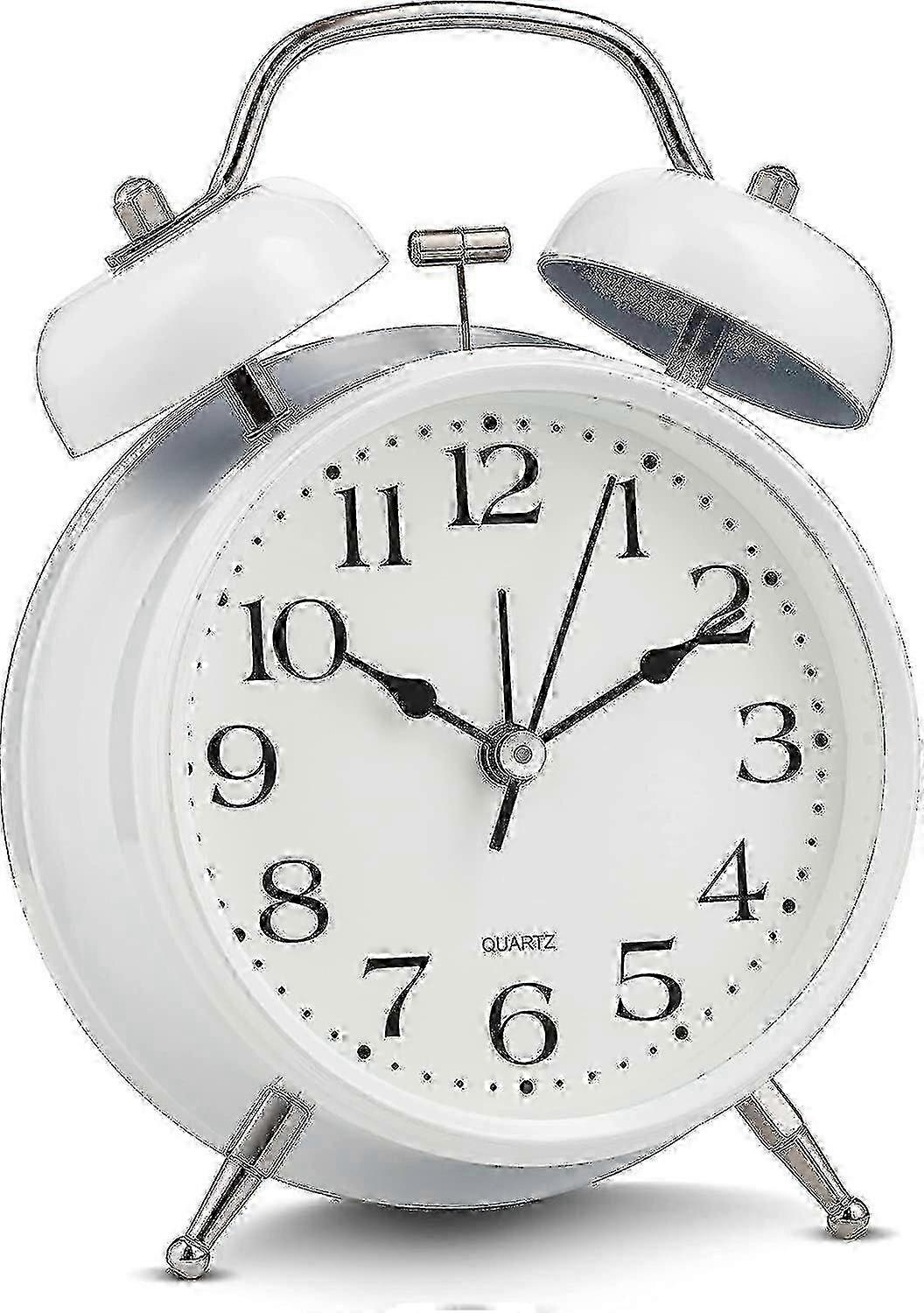 Enhanced Analog Alarm Clock: Twin Bells, Retro White, with Backlight & Non-Ticking Quartz Movement - Extra Loud for Bedside & Desk Decor
