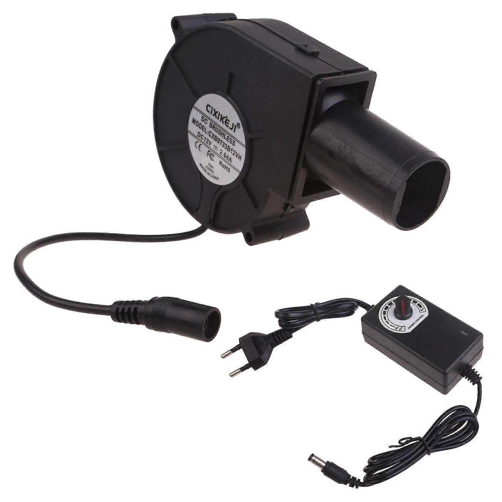 Features: Great for outdoor barbecue. Useful accessory for outdoor barbecue, camping cooking. It prevents the dust polluting your food, and it keep your food clean. It can help to reduce dust compared to hand fan. Made from high quality plastic-material, safe, non-toxic and odorless. Small size, lightweight and portable, easy to carry.An essential tools for BBQ fireplaces. With speed regulation power supplies enables setting fan speed to noise and airflows level for various applications and noise environment. brand new and high quality Specifications: Material:Plastic Plug Specification:EU/US Type:33mm/26mm Input:AC100-240V Output:DC3V-12V2A Speed:4300RPM Size:Approx. 9.7x9.7x3.3cm/3.8x3.8x3 inches Cable:Approx. 160cm/63 inches Package Includes: 1 Set Air Blower note: 1.Please allow 1-2cm errors due to manual measurement, make sure that you do not mind before you order. 2.Due to the difference between different monitors, the picture may not reflect the actual color of the item.