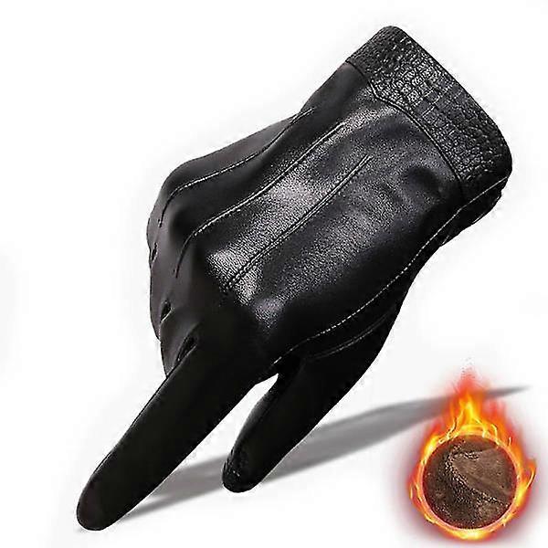Evago Touchscreen Winter Goatskin Leather Gloves For Men - Men's Fleece Lined Glove For Motorcycle Riding Black XL
