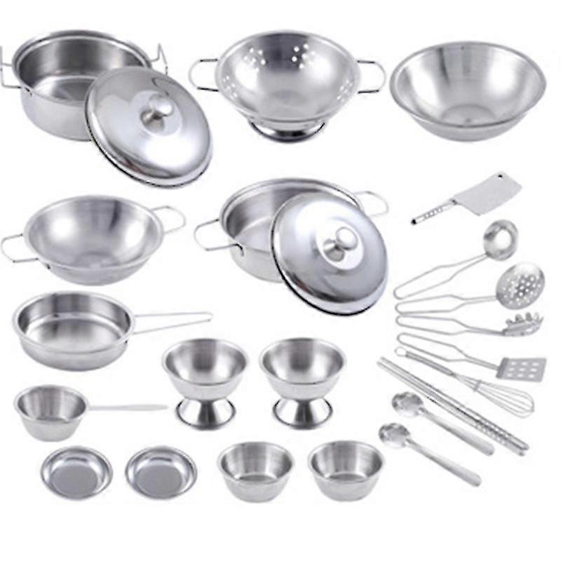 EVAGO 16pcs Set Stainless Steel Play Cooking Toy Kids Kitchenware Roleplay Toddler Playhouse Game For