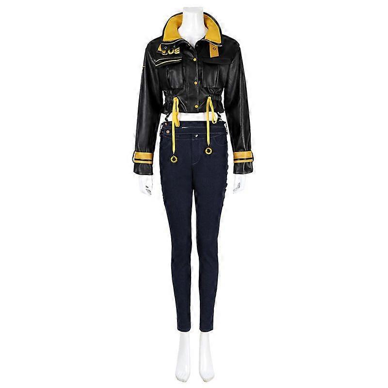 EVE Cosplay Costume from Stellar Blade Black and Yellow Cropped Jacket with Denim Pants and Accessory Straps | Sizes XS to XXXL