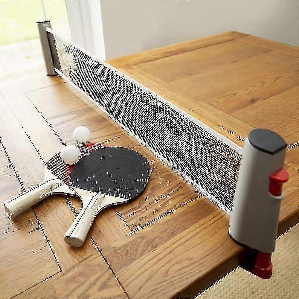 Table tennis set that turns any table into a play area within a couple of minutesNet extends to fit any size table and fixes in place using a padded vice on the foot that grips the table edgeSet includes expanding net, two paddles and two ballsNet posts are approx. 25cm tall, box dimensions are W25.5cm x H25cm x D8cmAll TOBAR products are rigorously tested and certified safe to the highest EU and UK standards