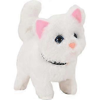 F Fityle Funny Electronic Pet Cat Early Learning Plush Puppy Toy Interactive Cat for Christmas Gift New Year Gifts Boys Girls - White