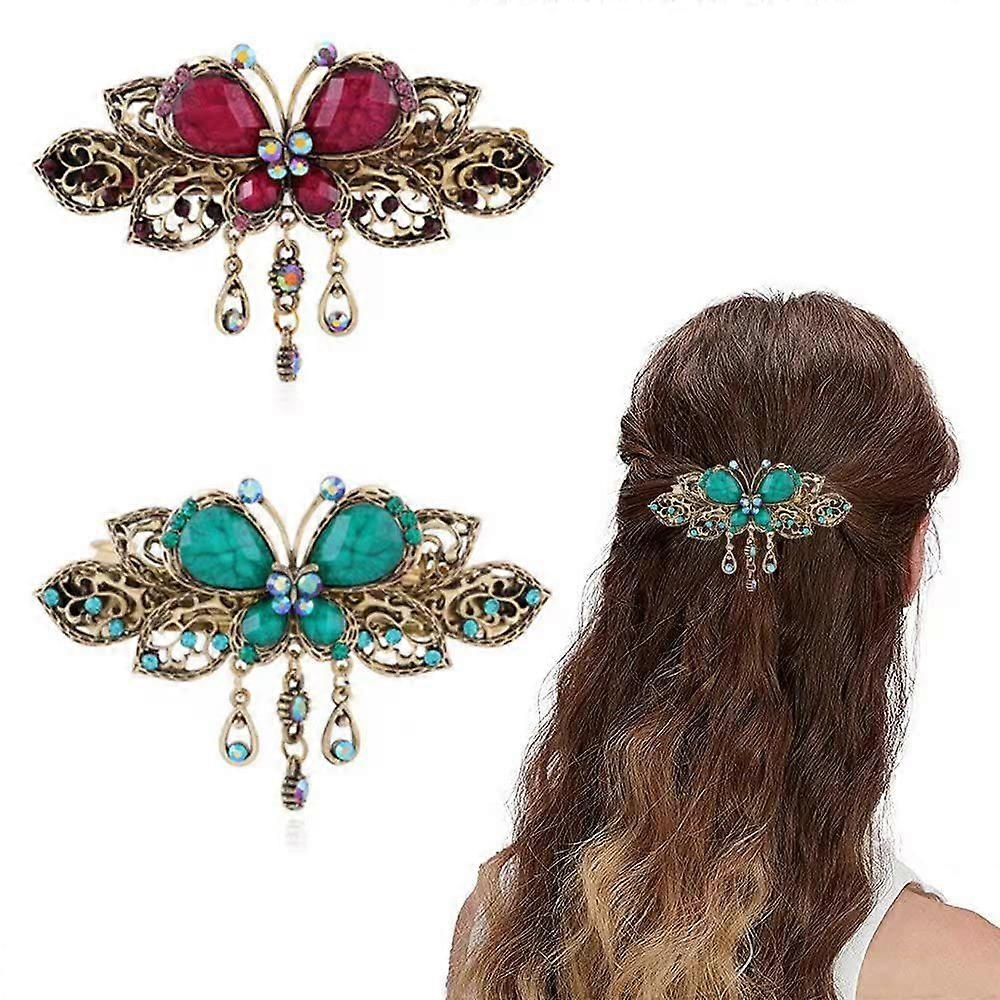 FAFAHOUSE 2 PACK Vintage Styling Butterfly Barrettes Hair Clips Brass Rhinestone Jewelry Bridal Hairpin Bridesmaid for Women