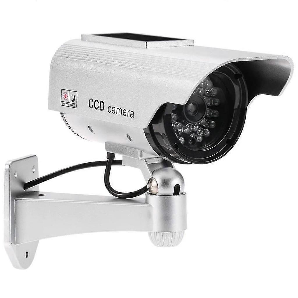 Fake Camera Waterproof Security CCTV, Rainproof Simulation Bullet Camera Solar Powered with Light, Compatible with Office & Stationery