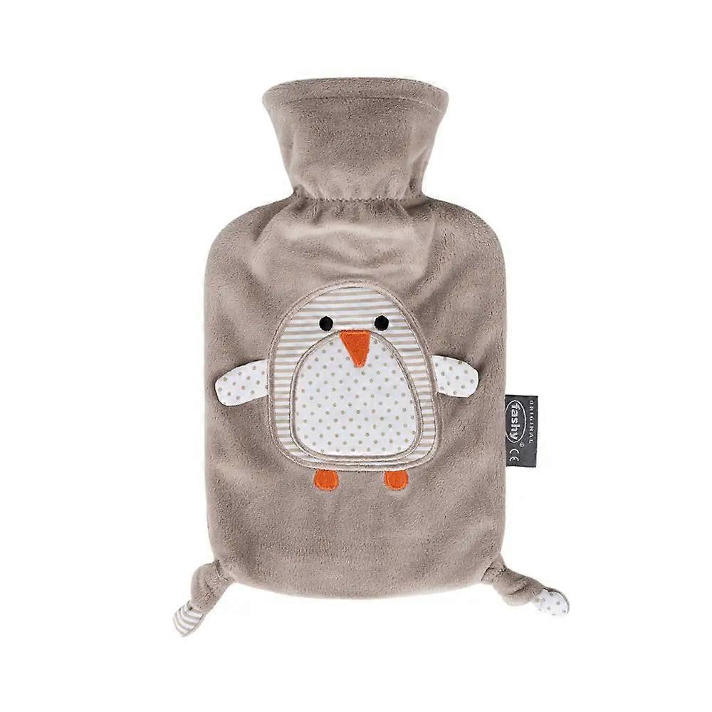 Fashy 0.8 Litre Hot Water Bottle with Pia Penguin Plush Cover - Taupe