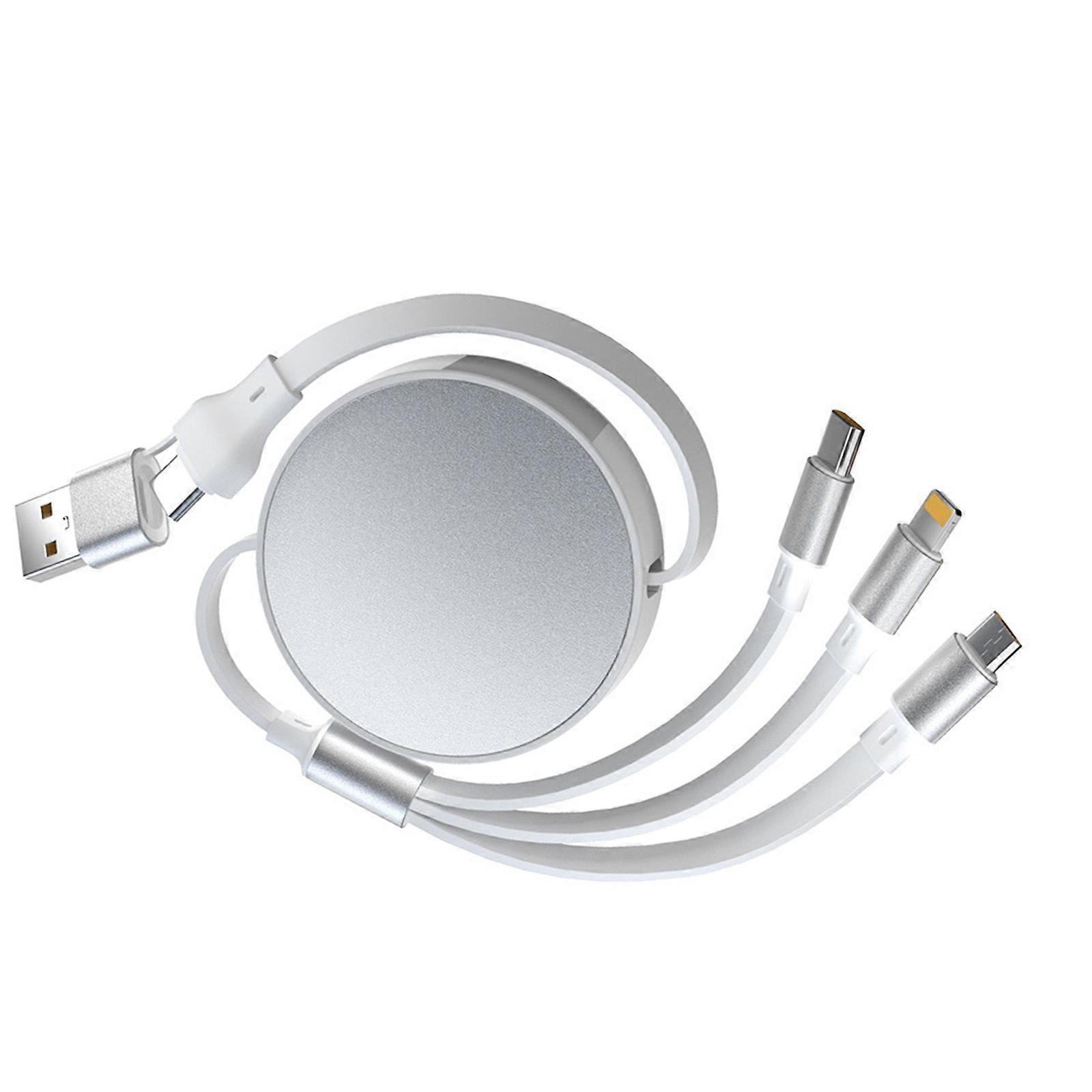 Fast Charging Data Cable 66W Stretchable Charging Wire Portable USB Data Cord USB/Type C to Type C/8 Pin Cord White