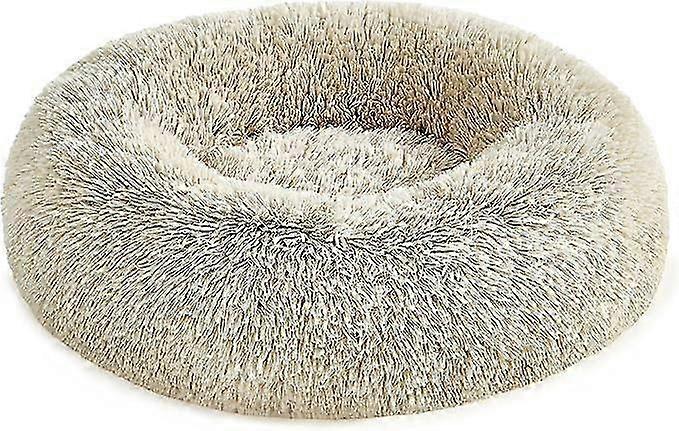 Feandrea fluffy dog bed, cat bed, donut cushion, washable, removable padding in the middle, long plush, 60 cm diameter, light gray PGW038G01