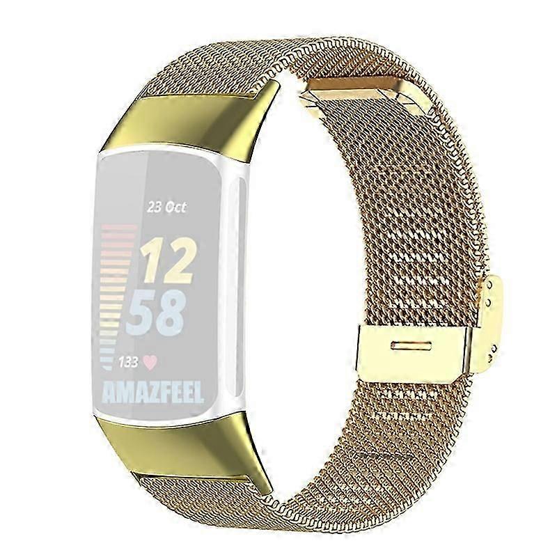 Type C For Fitbit Charge 6/5 Adjustable Milanese Watchband Luxurious Metal Mesh Watch Strap, Happy H