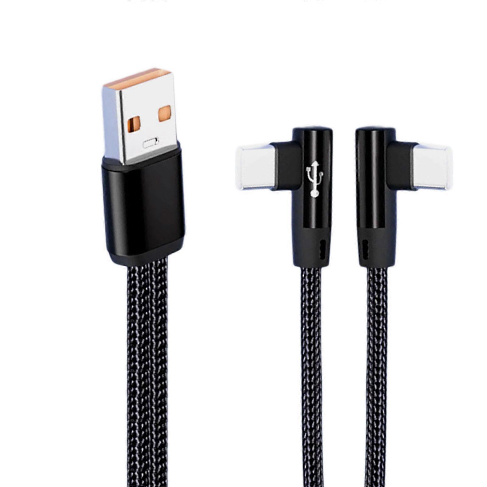 Flexible Angled 2 In 1 USB to USB C Split Charging Cable 5A Fast Charge Cord For Efficient Power Delivery Multicolor