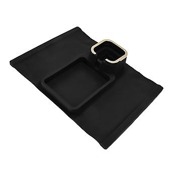 カウチアームカップホルダーソファアームカップトレイシリコンボディ、リビングルームバルコニー用4本のボトムアイアンチューブ付きブラック