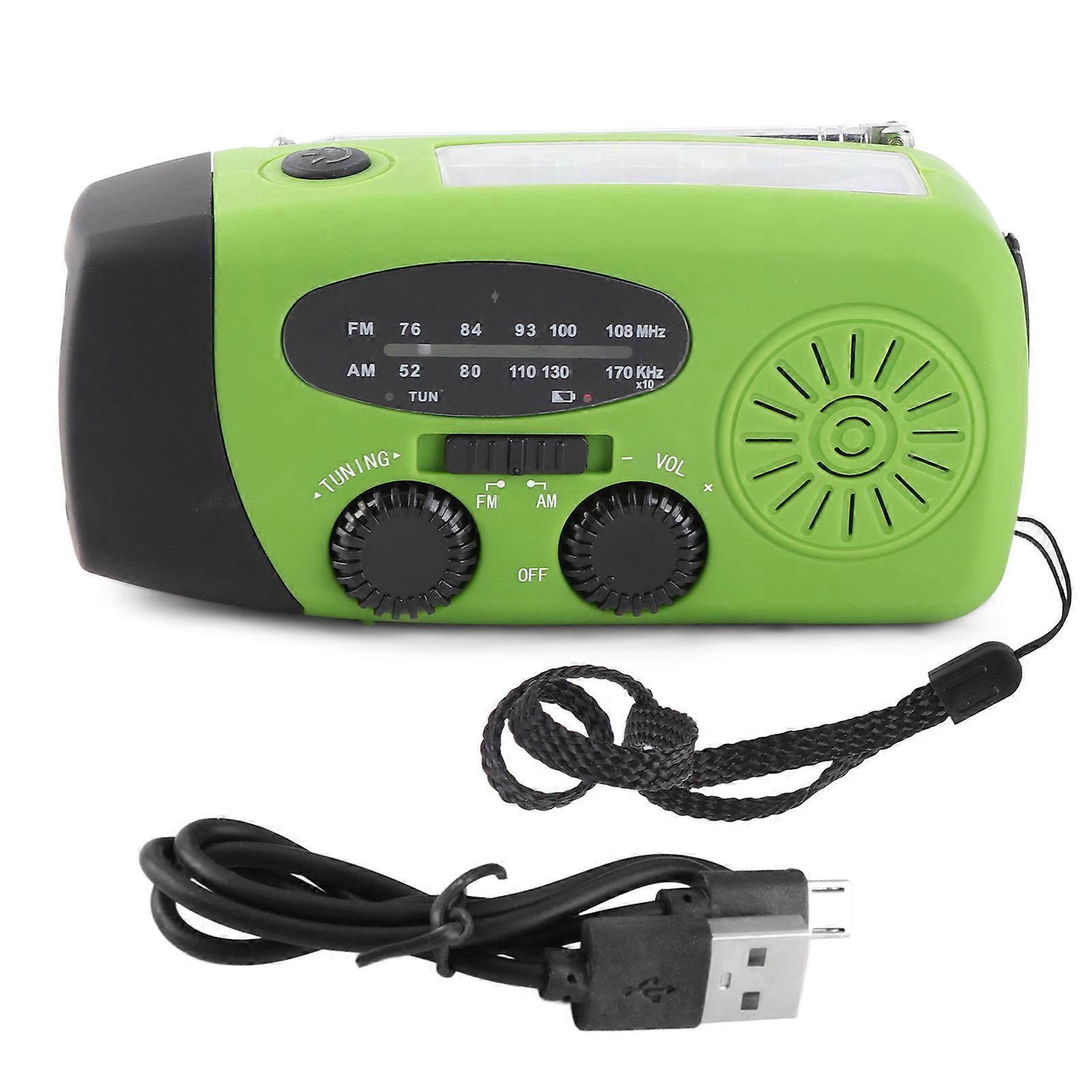Features: 1、3 ways to recharge the radio: rotate hand crank to generate power,directly expose the panel to sunlight to absorb sun energy,or recharge it by connecting provided USB cable to your computer/power bank/charger. 2、Power bank function and built in 1200mAh battery to easily charge your phone during outdoor activities. 3、With FM/AM channels to get the latest weather information. 4、Adjustable and telescopic antenna receive signal stability. 5、Convenient LED light provides bight and increased visibility for any dark places. 6、IPX3 water resistant to use during light rainy days.(NOTE: Please do not soak into water for long time.) 7、Portable size and anti lost hand strap,ideal for indoors and outdoors. Specification: Specification: Material: Plastic Battery : 1* built-in 3.7v 1200mAh Water resistant level: IPX3 Size: 128 * 60 * 45 mm / 5.0 * 2.4 * 1.8 in Package List: 1* Radio (with a hand strap) 1* USB Charging Cable 1* User Manual