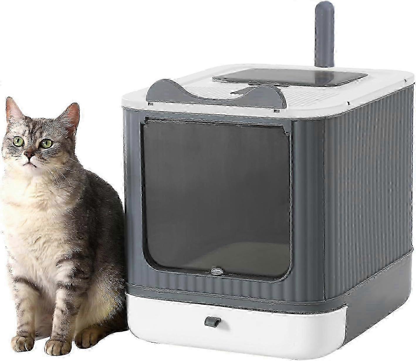 Foldable Cat Litter Box, Fully Enclosed Litter Box with Lid, Covered Kitty Kitten Litter Boxes Enclosure with Scoop, Odor Control, Easy to C