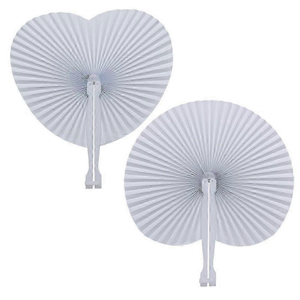 Fong Fong 24 Pcs Wedding Paper Fans Heart Shaped White Paper Fans Foldable Pocket Fan Compatible Wed