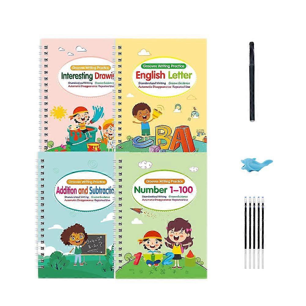 For Grooved Handwriting Practice Books 4Pcs Set Reusable Sensory Letter Tracing for Kids Learn to Write Alphabet Numbers